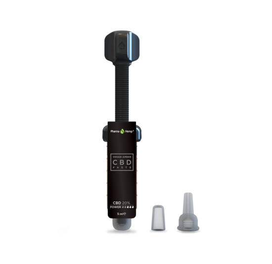 PharmaHemp® VEGAN AMBER CBD PASTE can be purchased in a 5ml syringe dispenser.