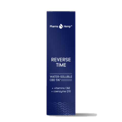 PharmaHemp® REVERSE TIME Water-Soluble CBD 5% + vitamins C&E + coenzyme Q10 contain an oil-in-water emulsion of CO2 extract of hemp plants.  The product is rich in CBD and a wide range of other cannabinoids and bioactive compounds creating an “entourage effect”.