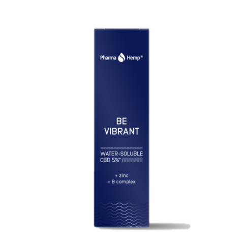 BE VIBRANT Water-Soluble CBD 5% + zinc + B complex contain an oil-in-water emulsion of CO₂ extract of hemp plants.