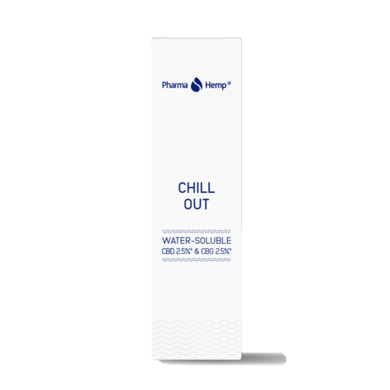 CHILL OUT Water-Soluble CBD 2.5% and CBG 2.5% contain an oil-in-water emulsion of CO₂ extract of hemp plants.
